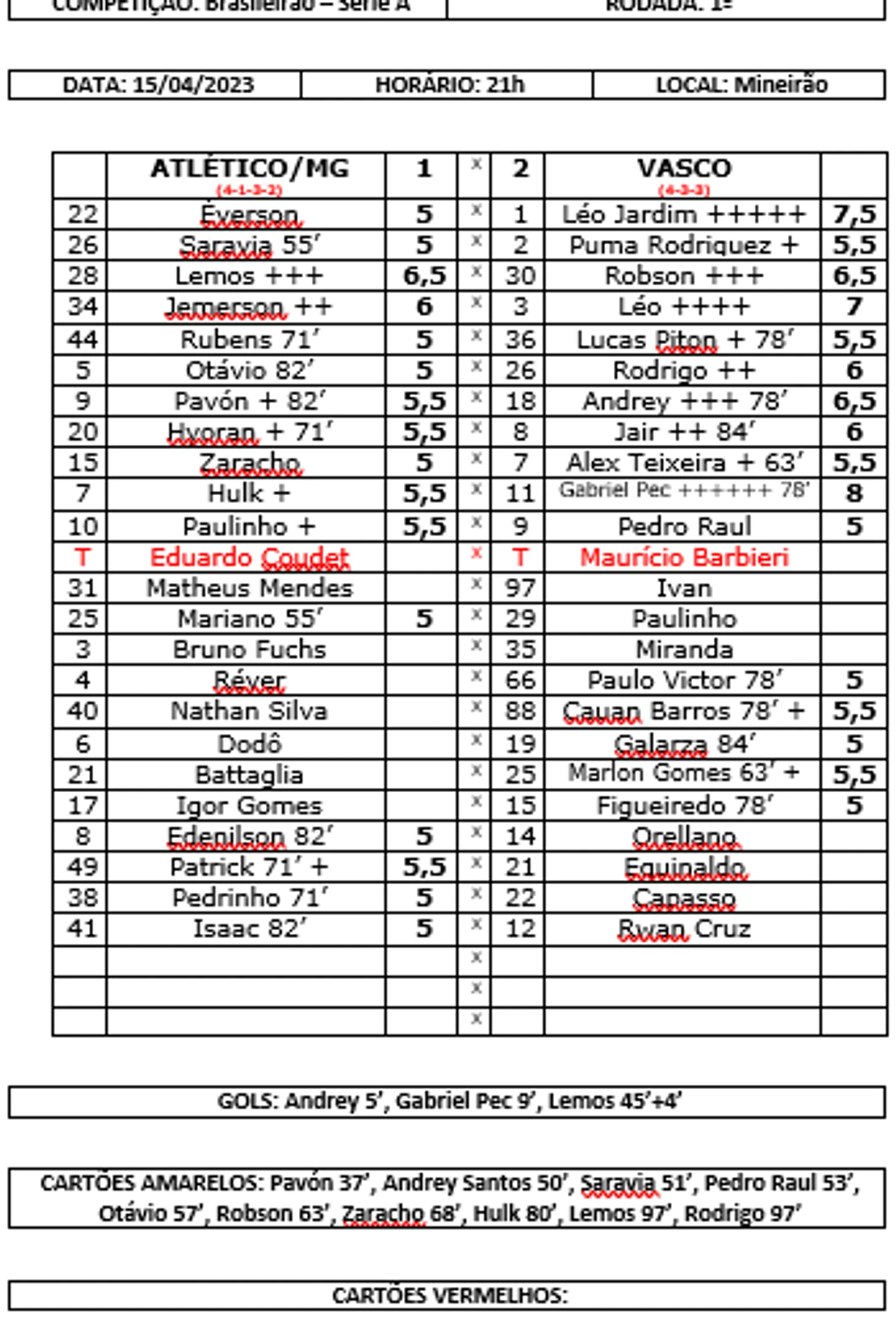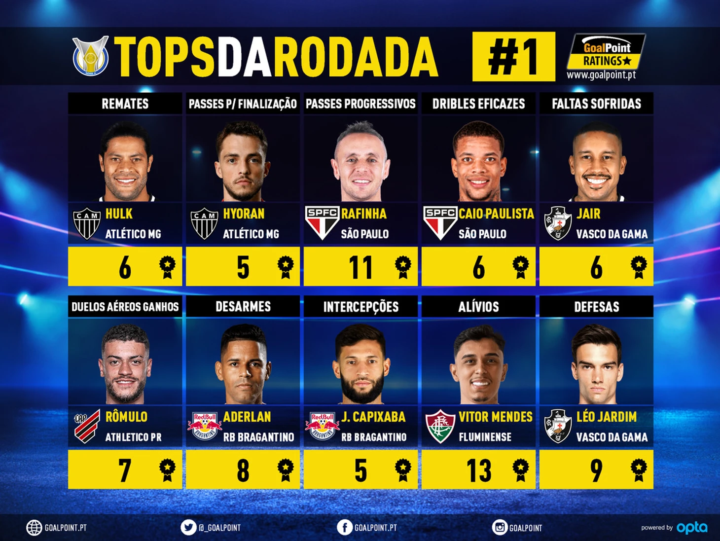Первый тур обошелся без особенных сенсаций. Разве что "Атлетико Минейро" проиграл дома "Васко". Впрочем Гало меня абсолютно не впечатляют, в Либертадорес такая же вялая игра. Да, в 2 матчах из трех вратари ловили кураж-Жардим и Бенто, но для одного из фаворитов это не оправдание, те более не сказать, что черно-белые уж обрушили лавину атак на ворота соперников.