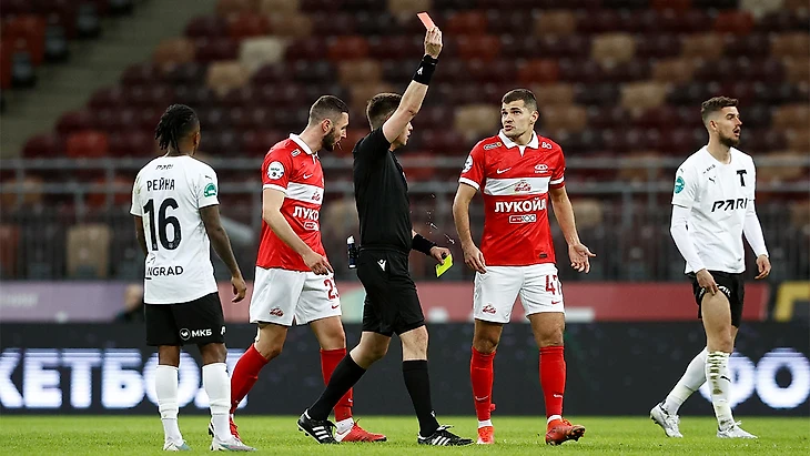 В концовке тайма спартачи дважды заработали пенальти и оба в похожих ситуациях – игроки заводчан не успевали за мячом и били по ногам соперника. В итоге в первом случае Литвинов не реализовал пенальти, так как удар отбил Бабурин. А вот третий 11-метровый уже пошел бить Зобнин и наконец-то «Спартак» смог пробить вратаря хозяев.