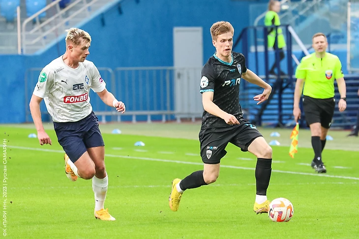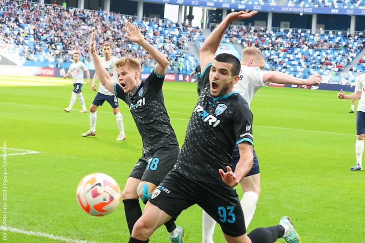 С первых минут матча гости завладели преимуществом и не отдали его на протяжении всего матча. Редкие попытки выйти из обороны через владение останавливались где-то в районе центрального круга и шла очередная волна атак «КС». Для обеспечения надежности Юран целенаправленно отказался от прессинга: меньше разрывы между линиями, быстрым и резким форвардам самарцев сложнее находить свободные зоны в защите нижегородцев. Сразу вспомнился первый год команды в РПЛ, где все было поставлено на оборону, а в нападении: вся надежда на стандарты или на «чудо». Но и при такой плотной защите, вставали в две линии, при этом вторая располагалась чуть выше линии собственной штрафной, соперник находил изредка бреши и создавал моменты. Несколько раз блестяще выручил Нигматуллин, но по большей части отчаянно сражались тройка центральных защитников: Александров, Гоцук, Каккоев. Писарский и Цыпченко быстро поняли, что из этой тройки можно вывести из себя Каккоева, стали атаковать через его зону, постоянно его подкалывая словами или провоцируя легкими тычками. Никита, не стесняясь, отвечал по-мужски: жестко, где-то с фолом шел в столкновения. Не скажу, что тройка защиты отыграла безупречно. Нет. Игроки «Крыльев Советов» ловили хозяев на ошибках при выходе в атаку, проводя свои великолепно натренированные быстрые атаки, именно их боялся Юран и выставил против очень низкий блок. В такие моменты было особенно беспокойно за сохранность ворот «Пари НН». Работала подстраховка (помним о насыщенности в обороне) или не получалось завершить уже у форвардов гостей.