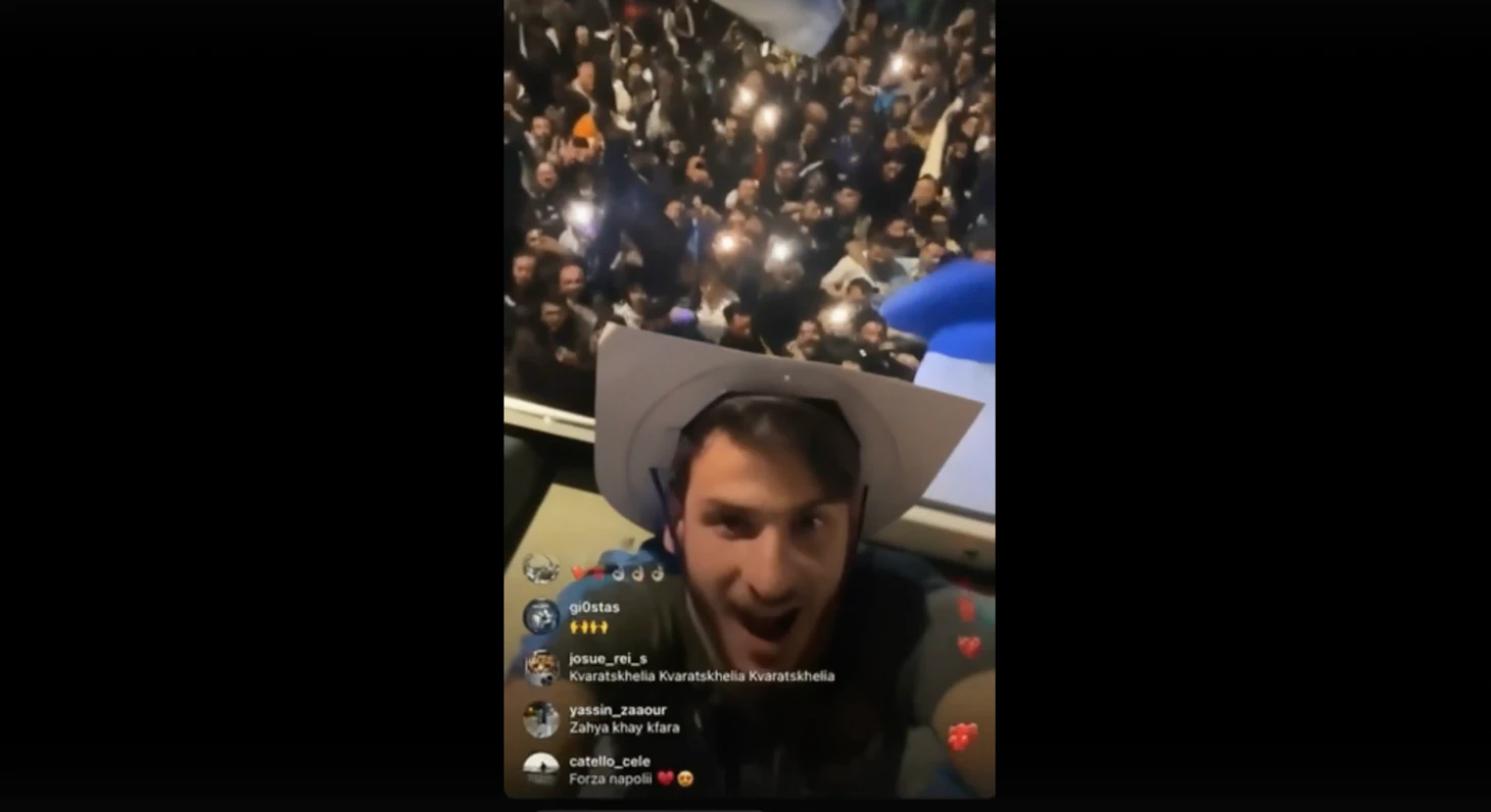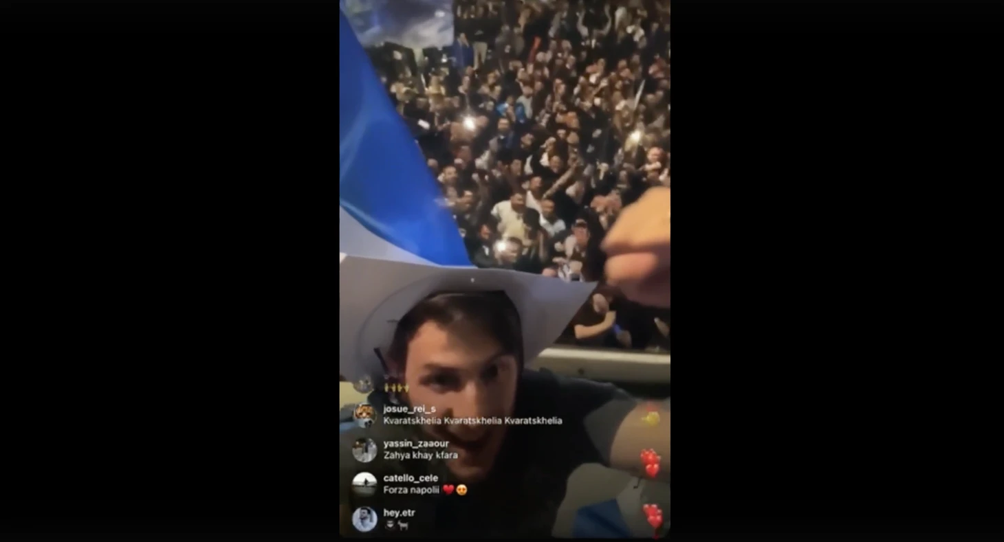 Кварацхелия, Замбо-Ангисса, Лосано и Осимхен не смогли игнорировать происходящее и забрались на крышу клубного автобуса.