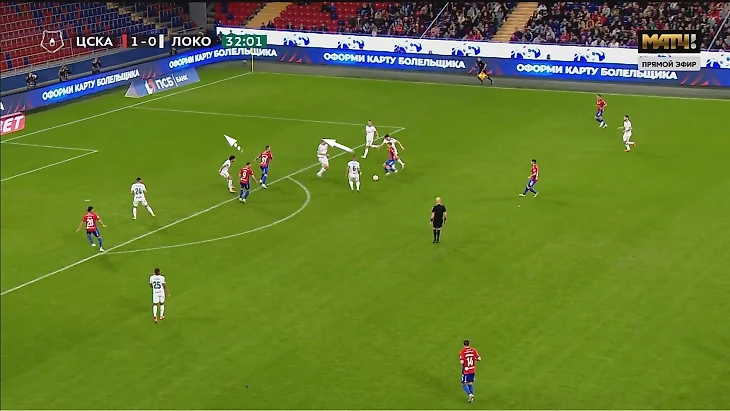 ЦСКА отлично контратаковал. Как правило, центральные защитники накрывали контрпрессингом отрезанных Глушенкова и Дзюбу, а затем переводили на фланг. Наиболее активно врывался Медина – Хесус часто ловил «Локо» в серых зонах, когда вингер уже выбежал в атаку, а Ненахов еще не успевал накрыть парагвайца (его часто сдерживал Чалов).