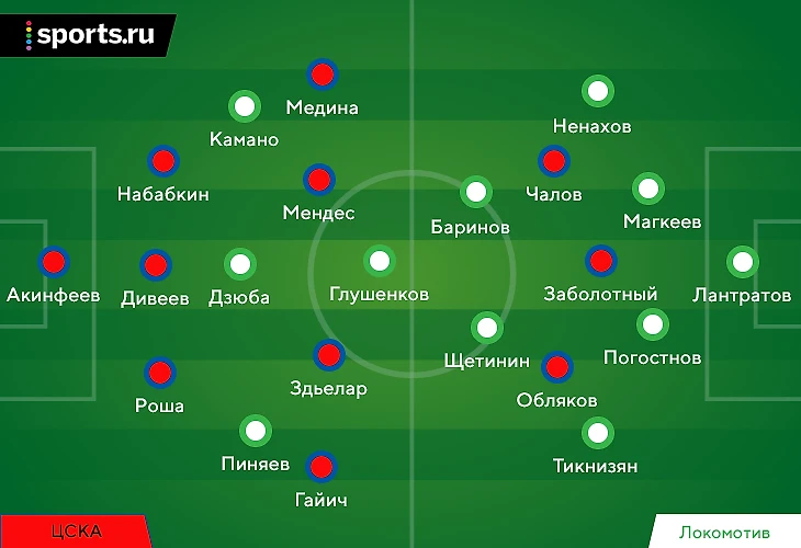 Отъезд Мойзеса Барбозы по семейным обстоятельствам запустил несколько перестроений в ЦСКА. В этой части сезона бразилец обычно играл левого центрального защитника, а осенью удачно конкурировал слева. Обе позиции в состоянии закрыть Бахтиер Зайнутдинов, но он не попал в заявку, поэтому круг кандидатов сузился. В итоге Кирилл Набабкин сыграл левого центрального защитника, при этом в запасе остался профильный левоногий центрдеф Илья Агапов, а слева вышел Хесус Медина, хотя Иван Обляков – более привычный выбор. Скорее всего, Владимира Федотова полностью устраивает распределение ролей в атакующей тройке ЦСКА, поэтому Обляков, находящийся в прекрасной форме, снова сыграл справа, а Хорхе Карраскаль остался в запасе.