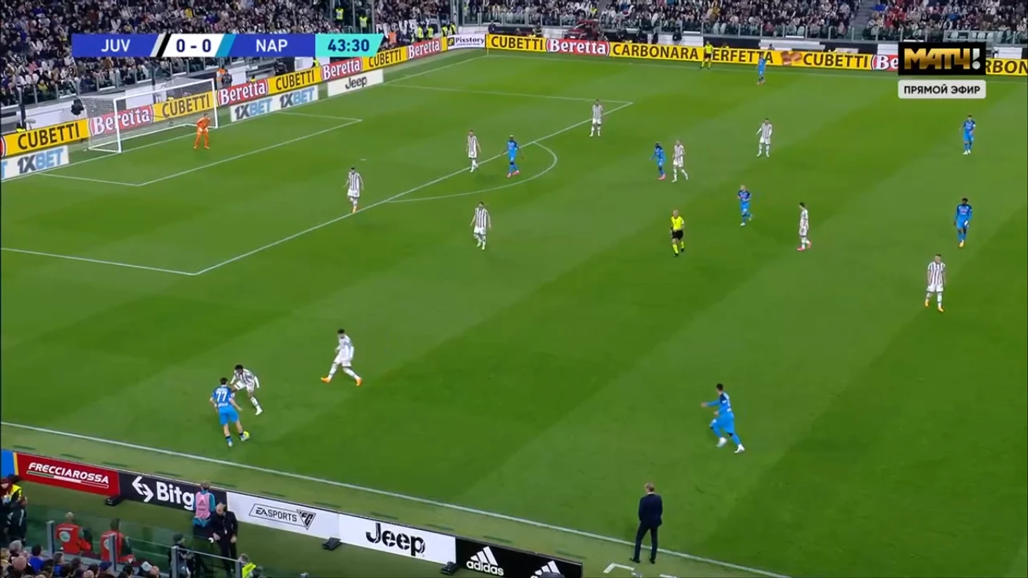 Массимилиано Аллегри существенно изменил тактическое построение своей команды. Матч первого круга «Ювентус» провел по схеме 3-5-1-1: в центре защиты играли Бремер, Данило и Алекс Сандро, на флангах – Костич и Кьеза, а при обороне все вышеперечисленные игроки оказывались в одной линии.
