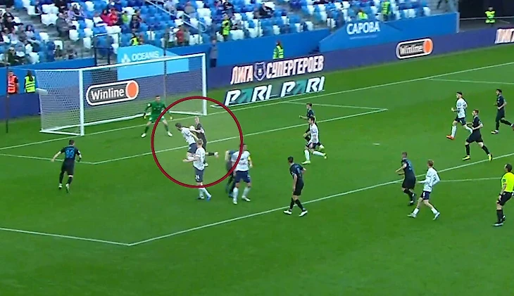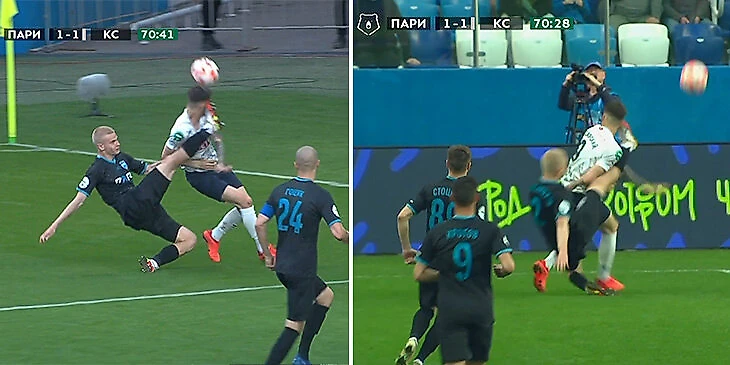 Спустя 7 минут Галимов снова пожалел Александрова и не показал вторую желтую за блокировку Бенхамина Гарре.