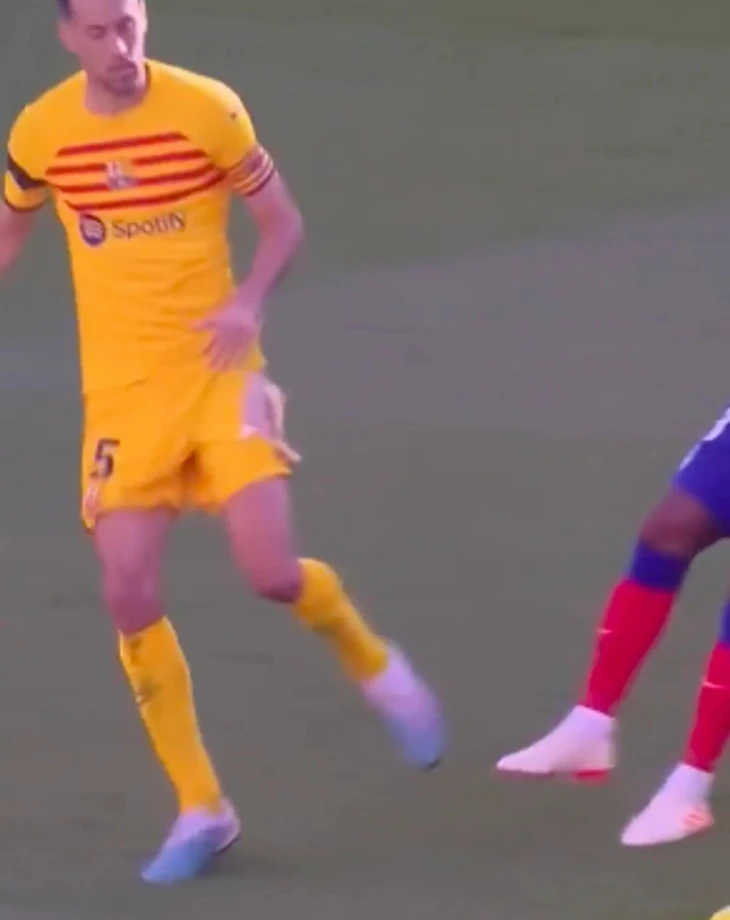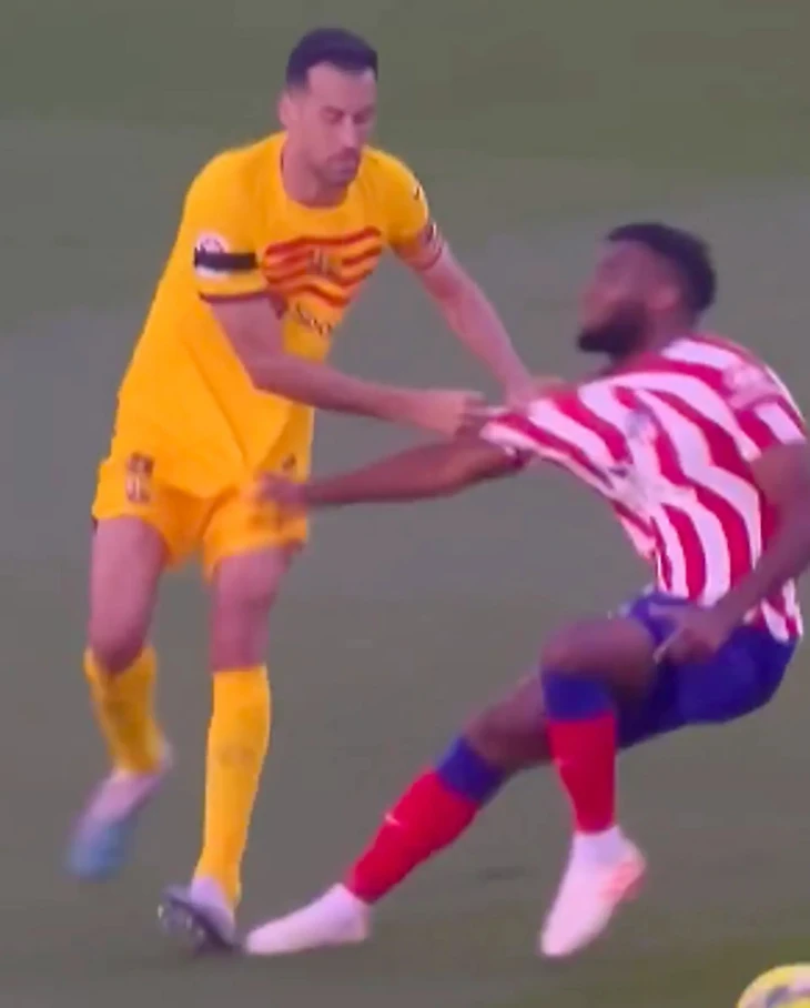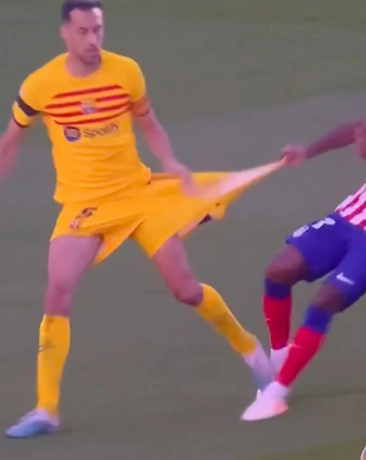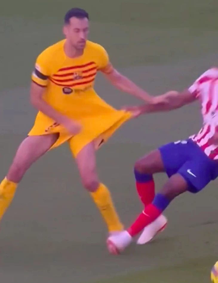 На 57-й минуте матча «Барселона»-«Атлетико» Тома Лемар фактически разорвал шорты Серджи Бускетса.