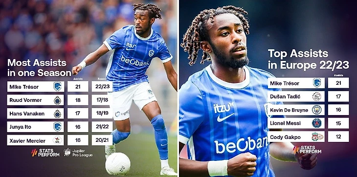 Речь про Трезора и Пейнтсила – они лучшие ассистенты как в «Генке», так и во всем чемпионате. Но если у Джозефа 11 голевых передач, то у Майка – 21!