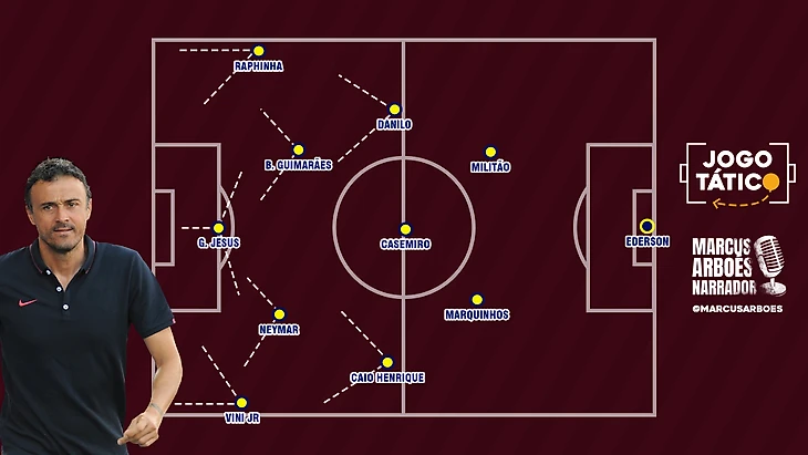 Луис Энрике. Мрак для Бразилии. Переход на позиционную игру в 2-3-5, как в сборной Испании, с привязанными к флангам вингерами, ложной 9 и Неймаром и Бруно между линиями. Плохая копия Тите.