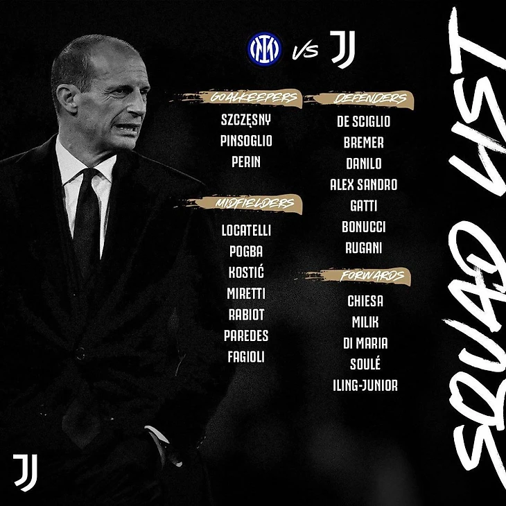 ⚪️⚫️ Заявка «Ювентуса» на матч против «Интера» 📜