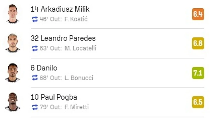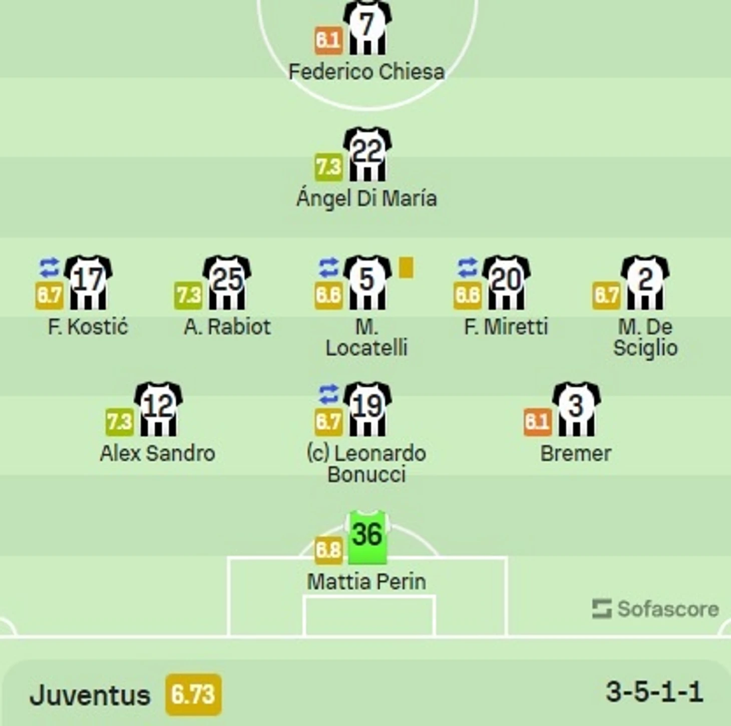 По оценкам портала SofaScore худшими в составе «Ювентуса» стали Глейсон Бремер и Федерико Кьеза, но и остальные игроки команды Аллегри получили низкие оценки: