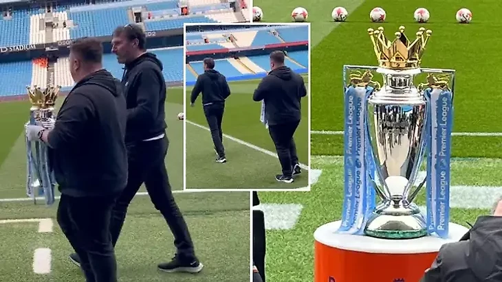 Журналист Viaplay Ян Оге Фьертофт опубликовал кадры, на которых представители «Сити» «зачем-то» переносят трофей, судьба которого во многом решалась во вчерашнем матче, переносят с боковой линии поля в центральный круг за два часа до начала встречи.