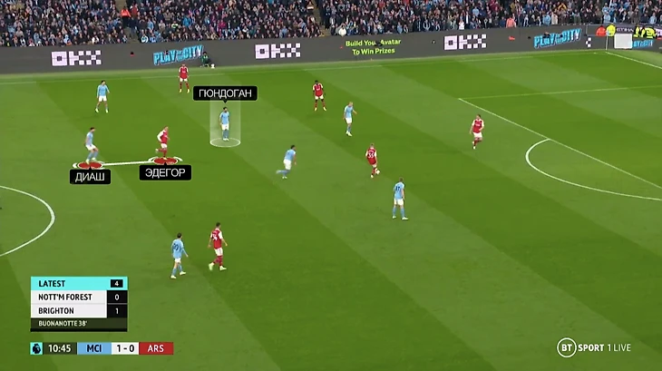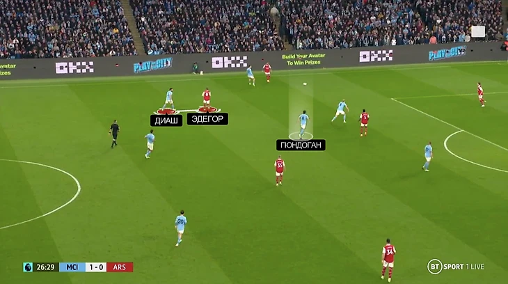 Благодаря этому приему «Сити» выключил фирменные комбинации между Эдегором и Сака.