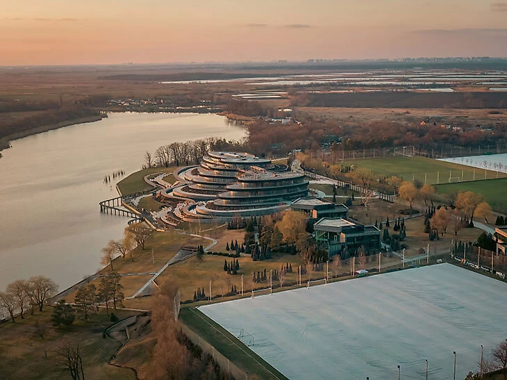 От Sports.ru: Евгений прав, через такую форму архитекторы воссоздали пластику роскошных яхт. «Террасы комплекса перекликаются с разноуровневыми палубами лайнера, на которых можно найти место как для общения с одноклубниками, так и для пребывания наедине с самим собой», – подчеркивают в RYMAR.studio. Кстати, а что вам напоминают эти здания? Космические корабли? Офисы где-нибудь в Силиконовой долине?
