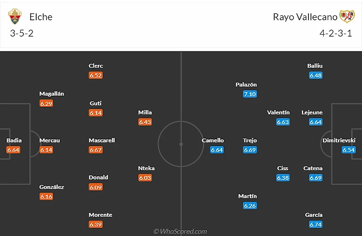 Кого брать:Гостей. С тонущим Эльче связываться не хочется, так что хватайте Лежена(5) с Дмитриевски(5,5) или Паласона(6,5) с Альваро Гарсией(7).