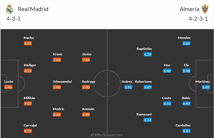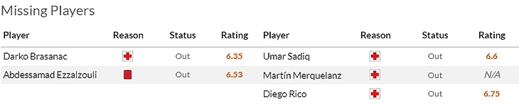 В Альмерии все несколько проще и понятней: Точно не сыграет дисквалифицированный Бабич(5,5) и видимо мы в этом сезоне больше не увидим Эль Биляля Туре(6,5), который крепко застрял в альмерийском лазарете.