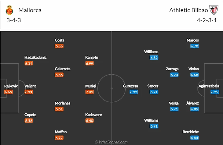 Кого брать: Все таки басков. Мальорка команда упертая, особенно дома, но все таки класс атлетов будет повыше. Так что имеет смысл поиграть Де Маркосом(5,5) с Унаи Симоном(6) или Нико Уильямсом(6) с Иньяки Уильямсом(8).