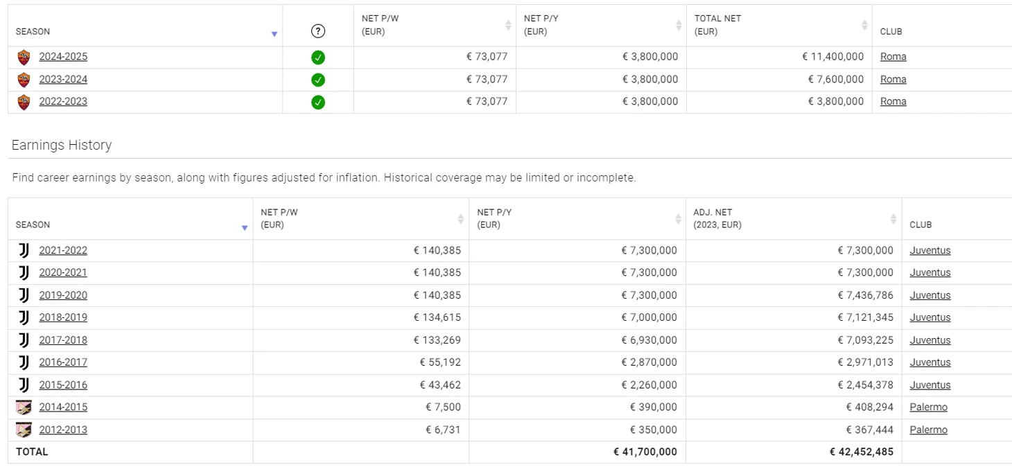 − если игрока захочет купить итальянский клуб, то он должен заплатить 20 млн евро. Однако у «Ромы» есть право блокирования выкупа, если они повышают зарплату игроку с 3,8 млн евро до 6 млн;