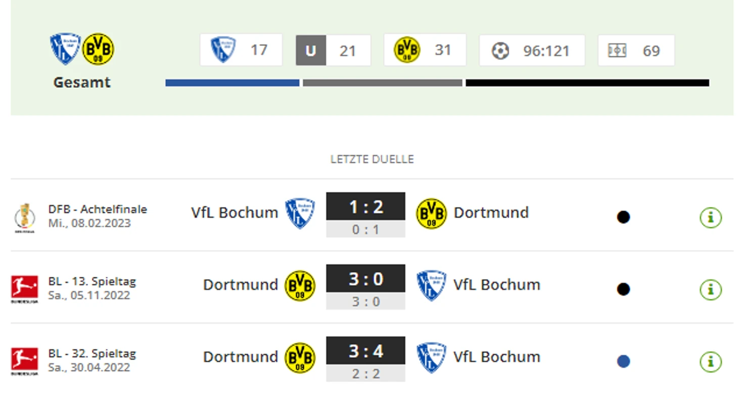 «Бохум» выиграл только один из последних девяти матчей против «Боруссии» (4:3 в сезоне 2021/22).