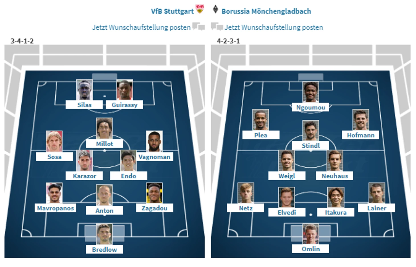 VFB: Bredlow - Mavropanos, Zagadou, Anton - Vagnoman, Karazor, Sosa - Millot, Endo - Führich, Guirassy