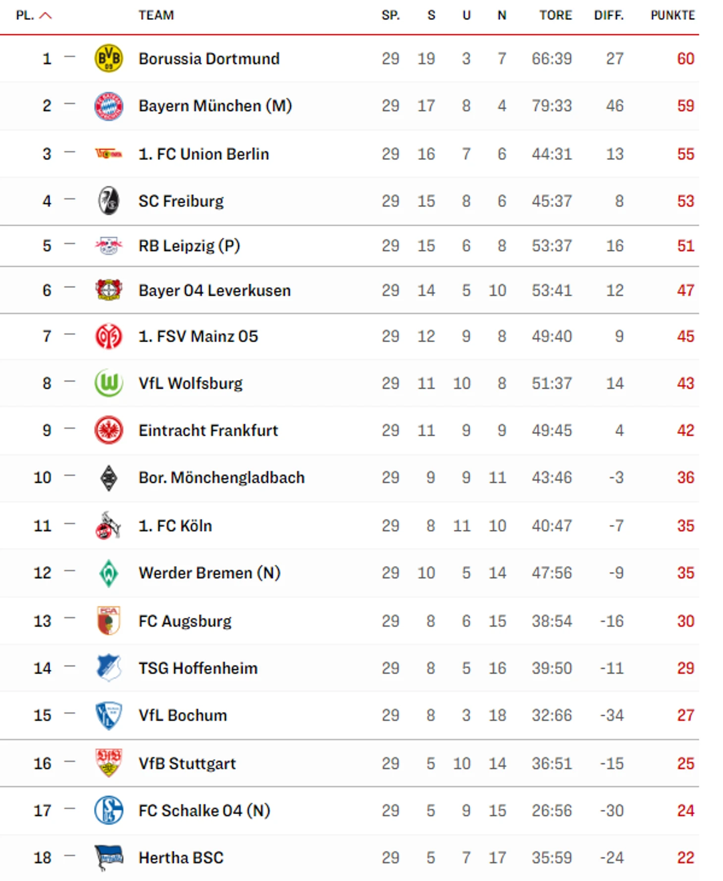 «Боруссия» возглавляет турнирную таблицу Бундеслиги после 29-го тура впервые с сезона 2011/12 – тогда «шмели» выиграли титул. Только один раз за последние 20 сезонов, команда, которая после 30-го тура находится на первом месте не выигрывала «салатницу» («Штутгарт» обогнал «Шальке» в сезоне 2006/07)