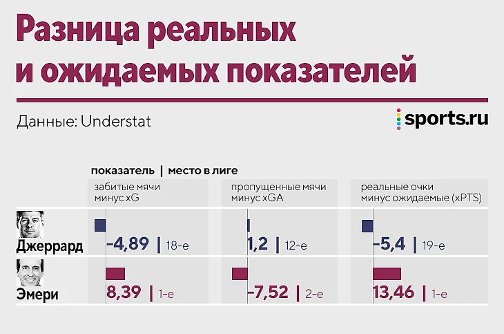 Может показаться удивительным, но статистические отличия между командами Эмери и Джеррарда не такие большие: