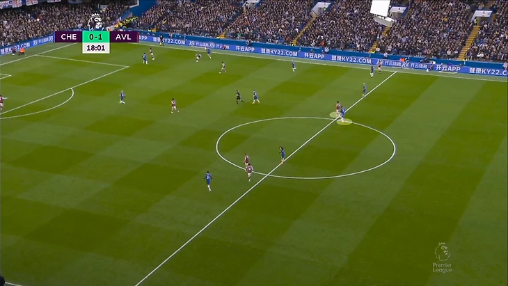 Здесь Уоткинс находится рядом с Кулибали. Он увидел, что Дуглас Луисз вышел из-под прессинга, и начал движение в сторону центра, между Кулибали и Кукурельей. К голевому моменту приведет несогласованность защитников «Челси», но это был уже второй шанс Уоткинса в матче, и он был к нему готов.