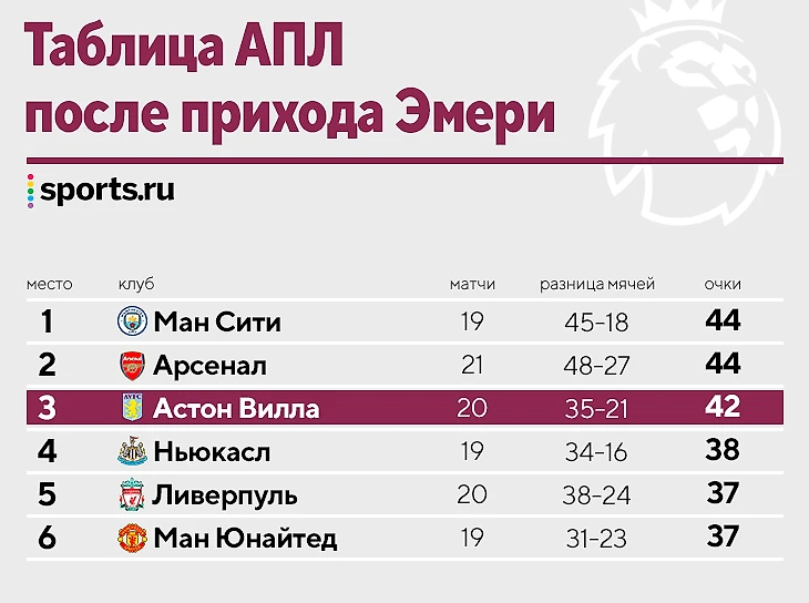 При Эмери «Вилла» – лидер по перебору забитых голов и очков, вторая – по недобору пропущенных