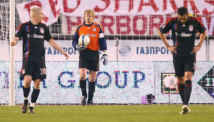 В конце первого тайма Константин Зырянов прорвался к Оливеру Кану и пробил мимо легендарного голкипера – 2:0!