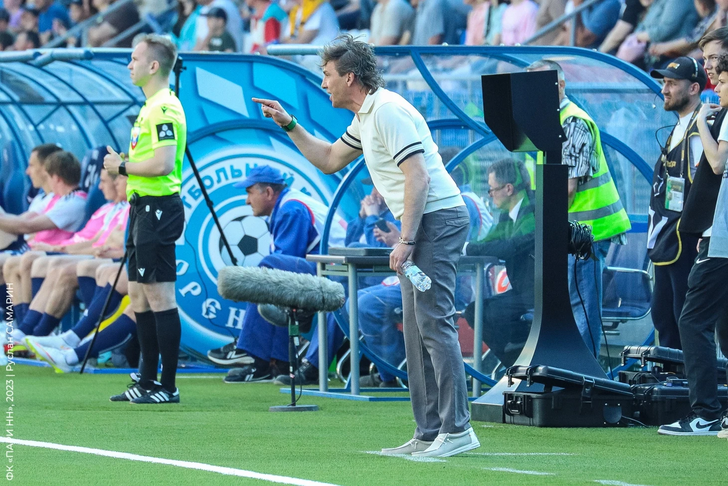 Гол отменили из-за подозрения на офсайд. Долго совещались с VAR, но как оказалось после матча, линии по игрокам не чертятся. То есть судьи VAR просто с доступных камер на «глазок» определяли, кто был ближе к вратарю. Очень кринжово. Обидно... Голевая атака проходила на фланге. На этом и была построена игра в нападении нижегородцами. Понимая, что центр хозяев не пройти, там собраны высококлассные футболисты, Юран предпочел строить выход из обороны через длинный заброс к бровке. Это удивило, так как на поле были одновременно Глушаков и Калинский, которые могут подержать мяч через передачи. Но тактика сработала. До отмененного гола игроки «Пари НН» успешно атаковали через края.