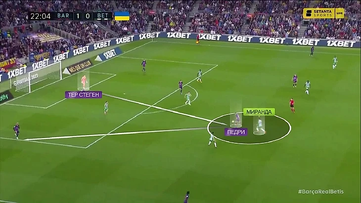 Тер Стеген находит его передачей, но в этот раз на Педри выдвигается Миранда: