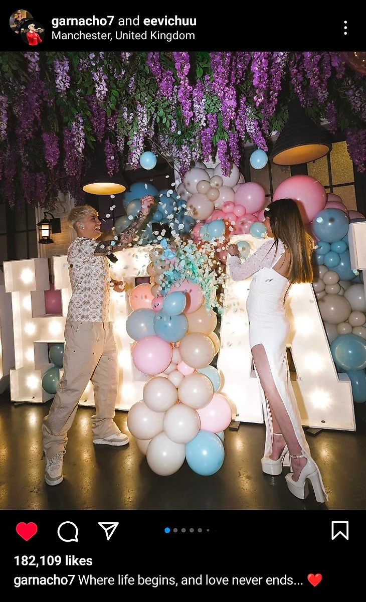 18-летний Алехандро Гарначо объявил, что очень скоро станет отцом. Вингер «Манчестер Юнайтед», недавно подписавший новый пятилетний контракт, поделился фотографиями вечеринки, посвященной раскрытию пола его ребенка.