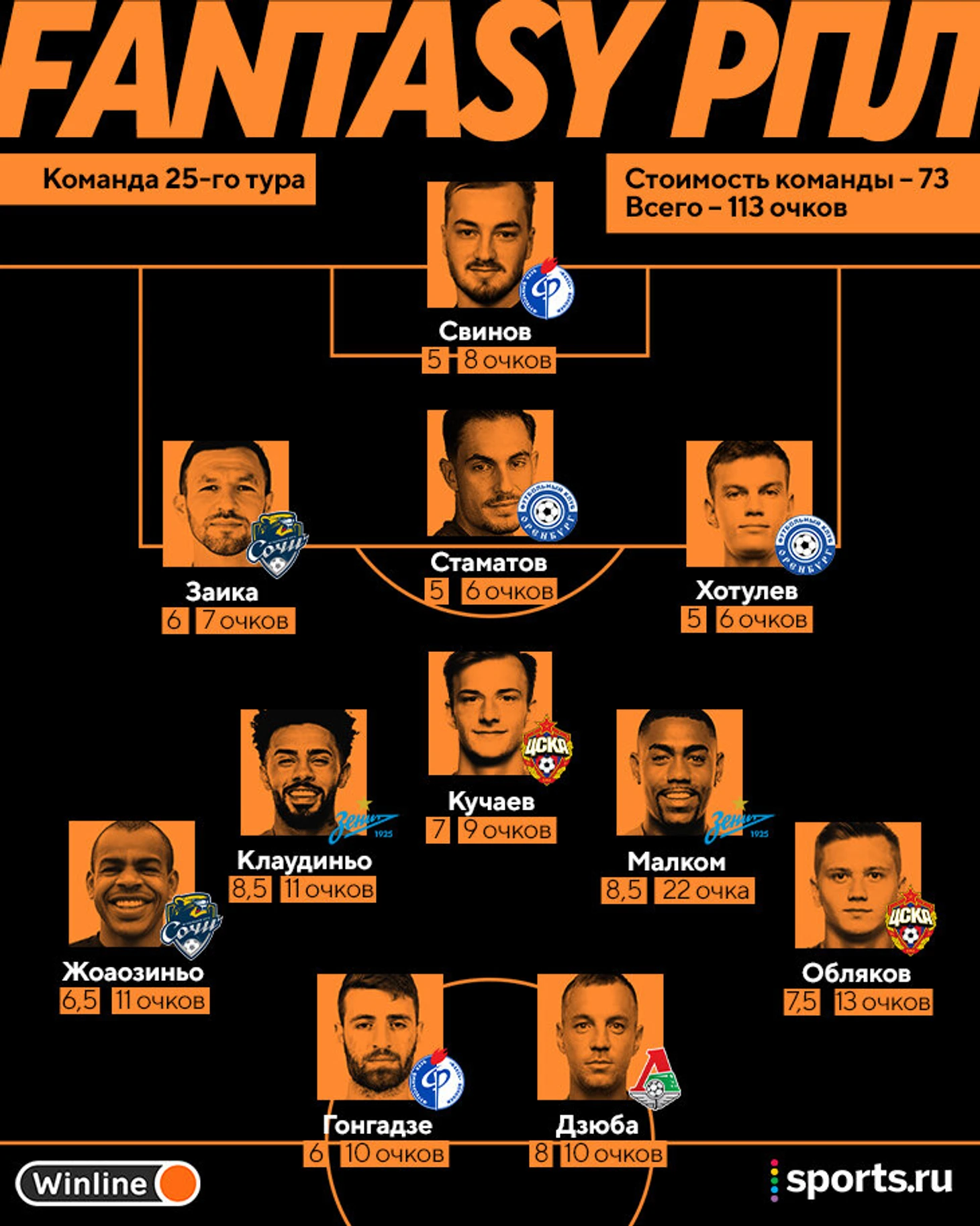 😍 Малком – суперзвезда. Редкое для РПЛ событие – покер, 22 фэнтези-очка. А тем, кто не стал выдумывать и сделал его капитаном, достались вообще 44 – как иногда за весь тур от команды.