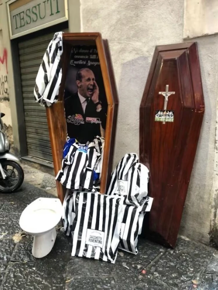 В одном из кварталов Неаполя появился гроб с изображением Аллегри, фотографией команды и футболками «Ювентуса»