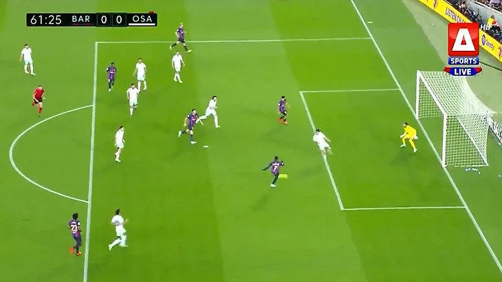 «Барса» создавала большое количество моментов, но мяч в ворота не шел. Яркий пример: Усман Дембеле во втором тайме не попал по воротам из такой позиции.