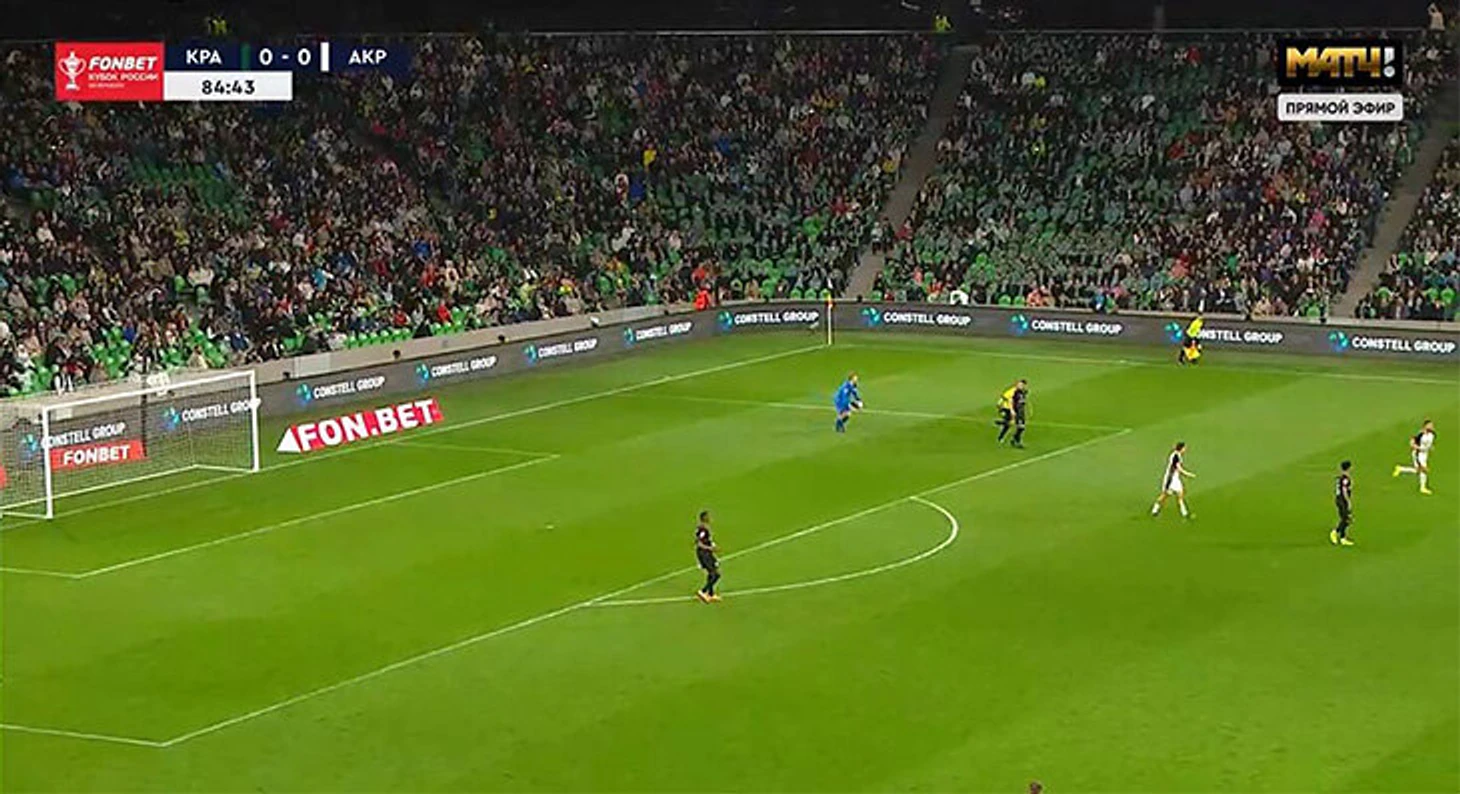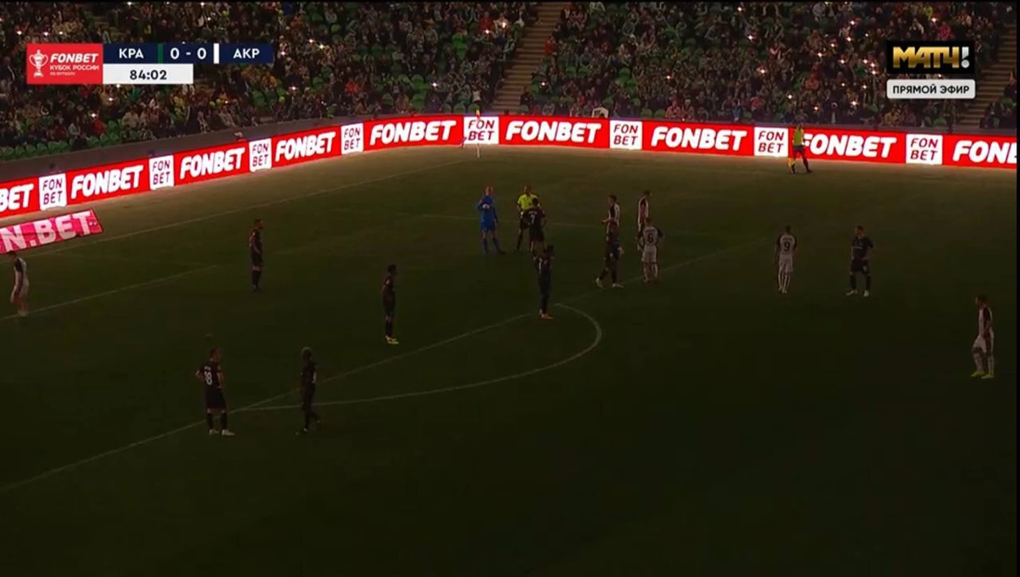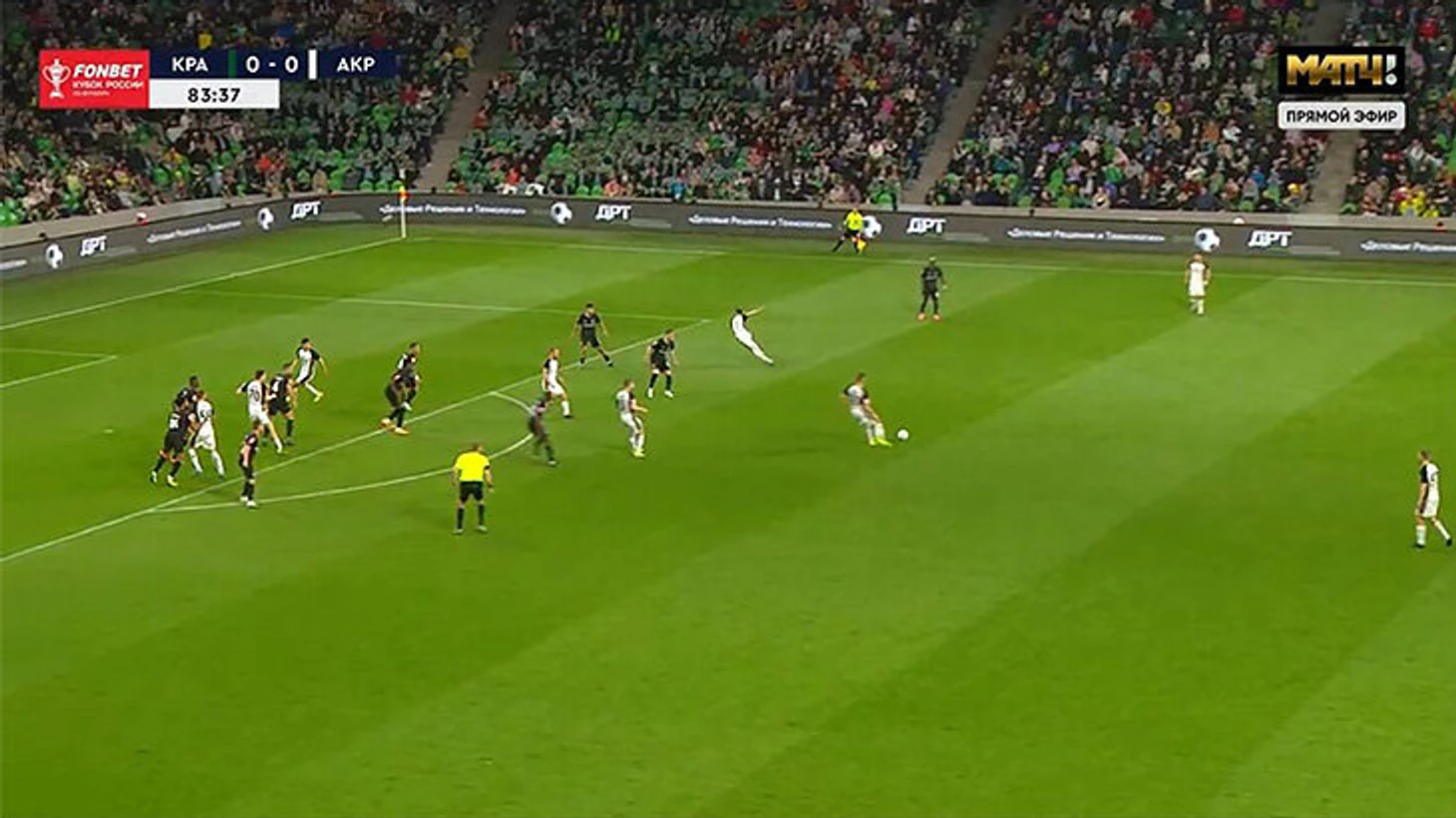 А через минуту игра возобновилась. Но уже не атакой «Акрона», а владением «Краснодара».