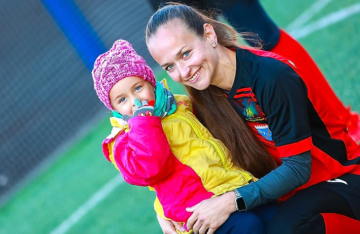 Раньше дочь с собой я не брала, но сейчас она подросла, начала ходить на гимнастику. У нас совпадает расписание, поэтому после ее тренировки мы приходим сюда. Здесь всегда много детей, она даже нашла подружку. Теперь говорит: «Мама, я пойду с тобой на футбол». Правда, один раз ей мячом прилетело, но ничего».