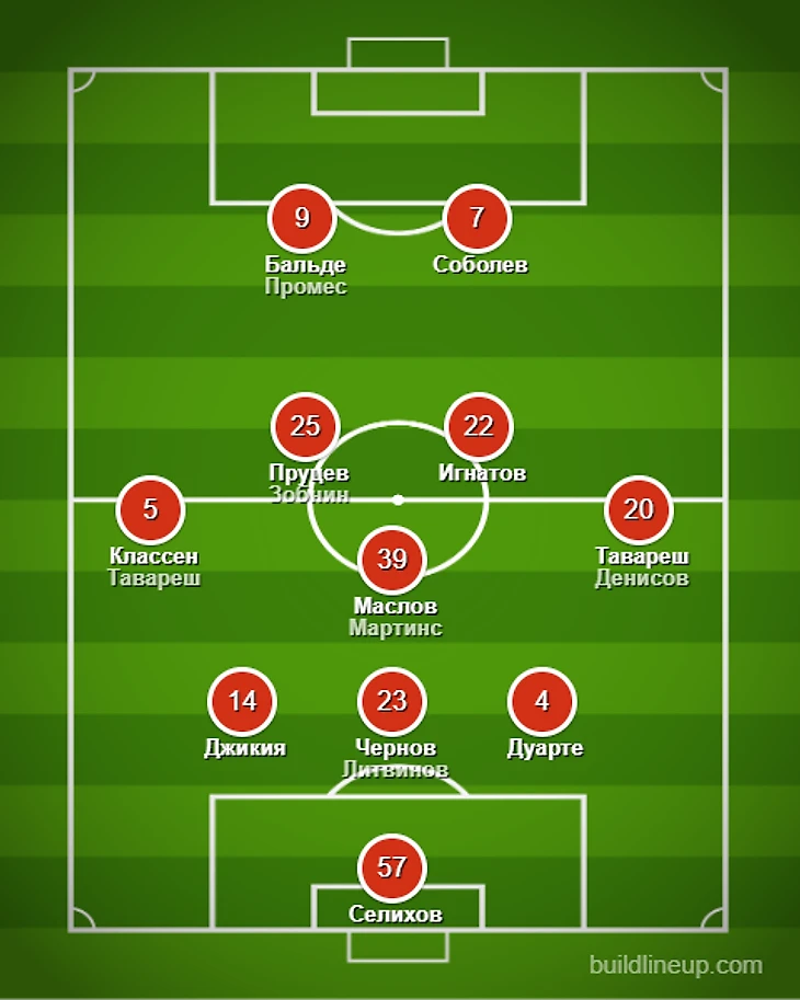 Системная проблема – узость атак. Слева Зобнин ещё может нагружать фланг, но правый – практически не работает. Мартинса Абаскаль использует не как полноценного вингера, а в качестве ориентира в штрафной. Николсон – неповоротливый. Готов играть на обоих краях и всегда подстраивается под партнеров Зиньковский. Однако именно в схеме с «ромбом» тренерский штаб его практически не использовал. Исключением стал матч с «Акроном», где в старте вышли все атакующие игроки.