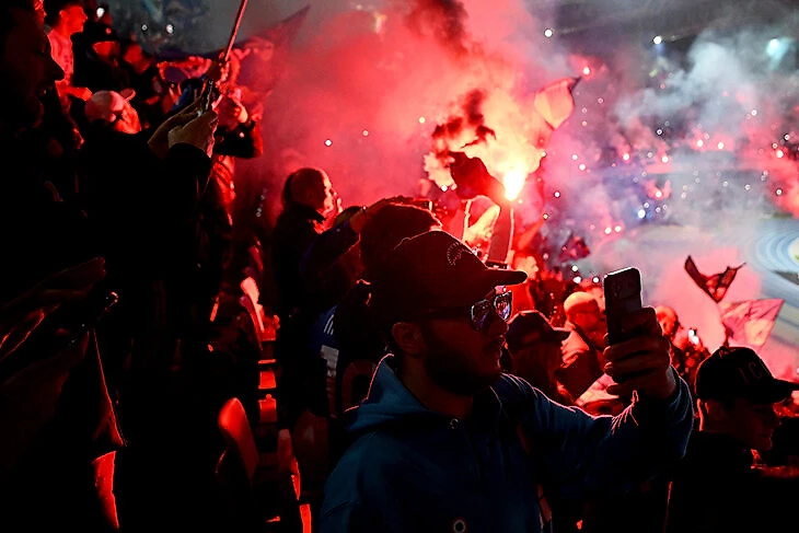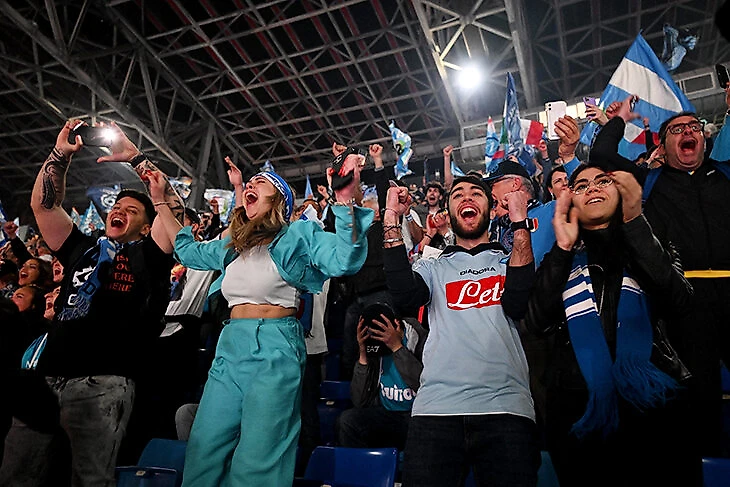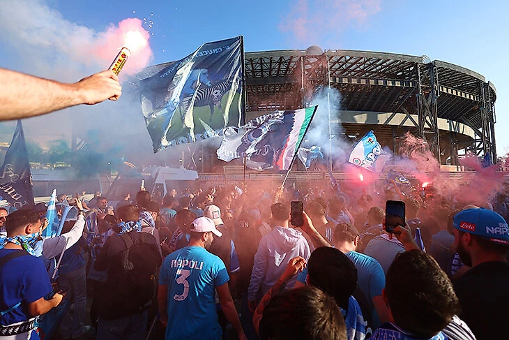 Чемпионство взяли в Удине, но целый город шел на «Диего Армандо Марадона» как на матч. Фанаты окружили стадион с флагами и пиротехникой.