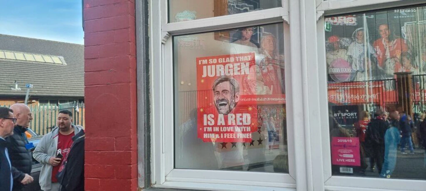 Майкл, который продает шарфы рядом со стадионом, говорит, что товары с изображением Юргена Клоппа пользуются большей популярностью, чем те, на которых изображены его предшественники Брендан Роджерс или Рой Ходжсон. Необычно видеть болельщиков Премьер-лиги в одежде, украшенной именем их менеджера, но здесь это обычное дело.