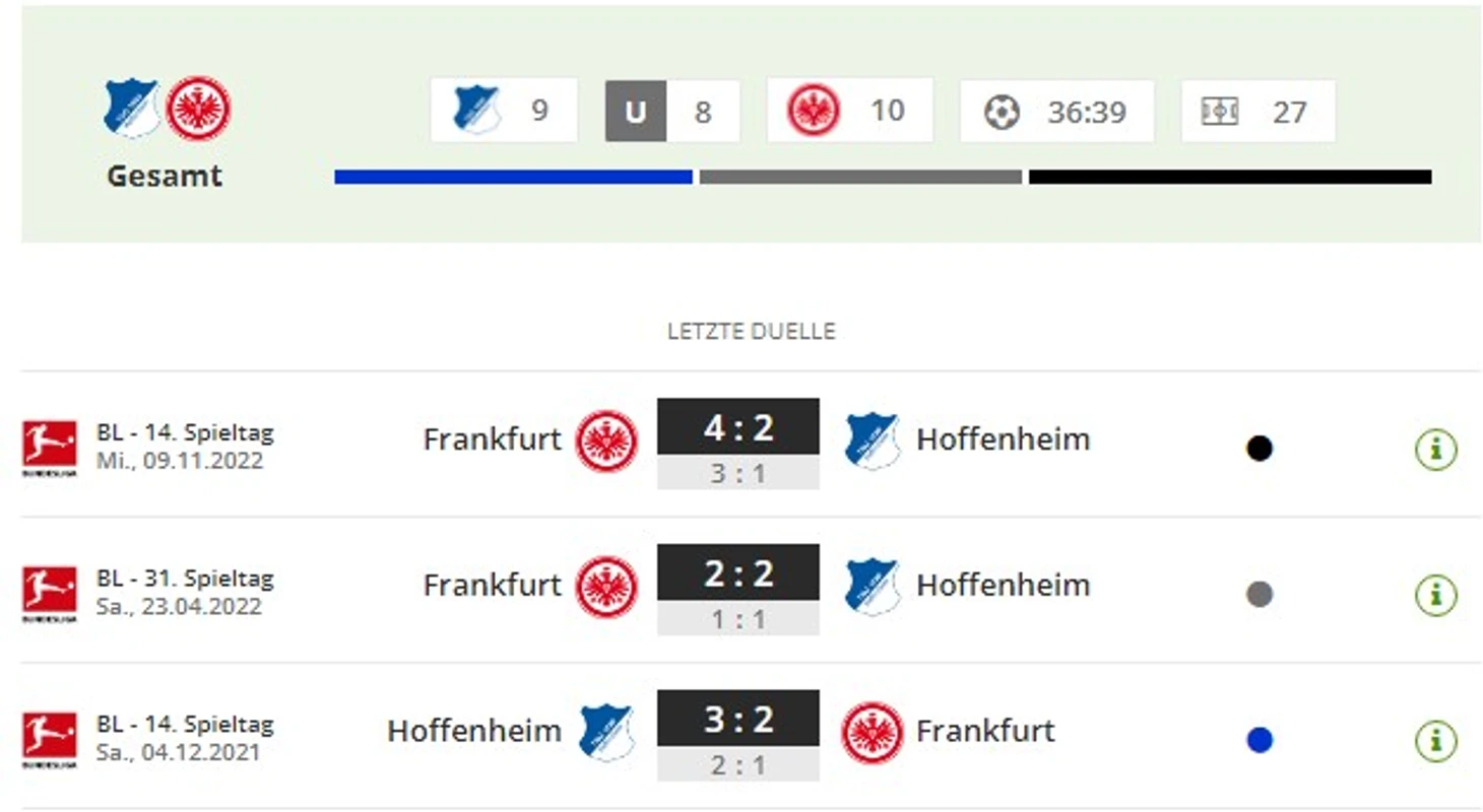 «Франкфурт» проиграл только один из последних одиннадцати матчей против «Хоффенхайма» в Бундеслиге (семь побед, три ничьих). «Орлам» важна победа, чтобы продлить впечатляющую серию;
