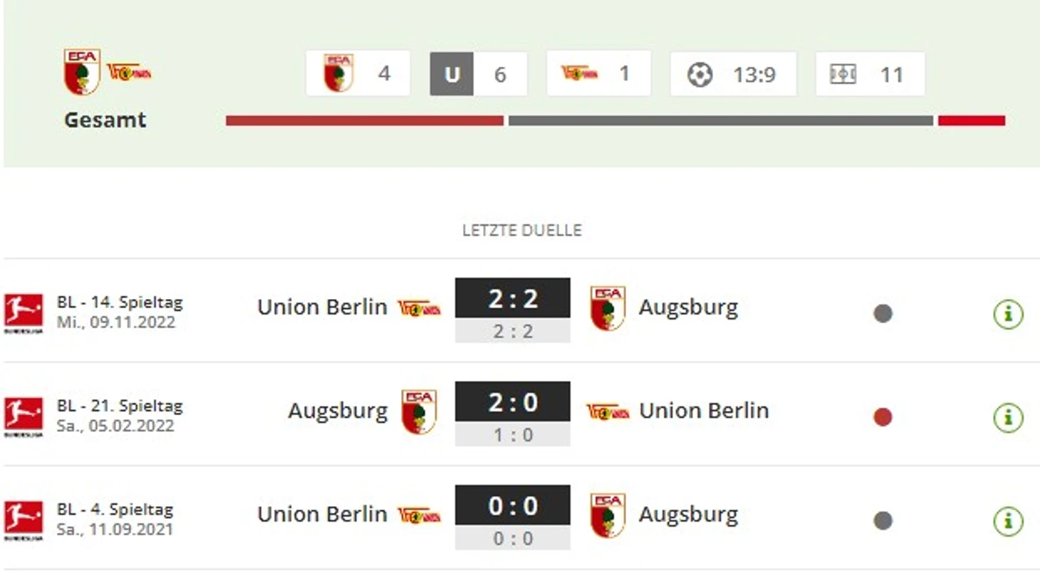 В целом, именно против «Униона» у «Аугсбурга» лучшая статистика личных встреч (три победы, три ничьих и лишь одно поражение в семи матчах).