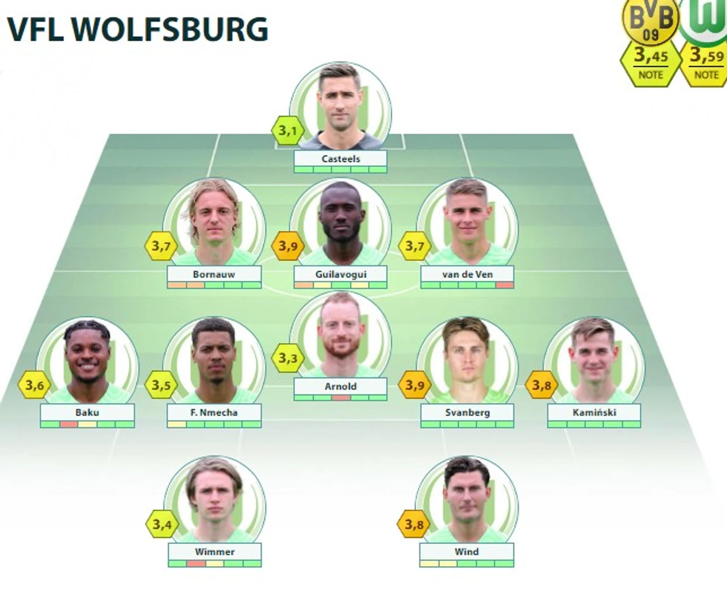 В «Вольфсбурге» ни один игрок не забивал больше шести раз (Янник Герхардт и Йонас Винд) – ни у одной команды нет лучшего бомбардира слабее.