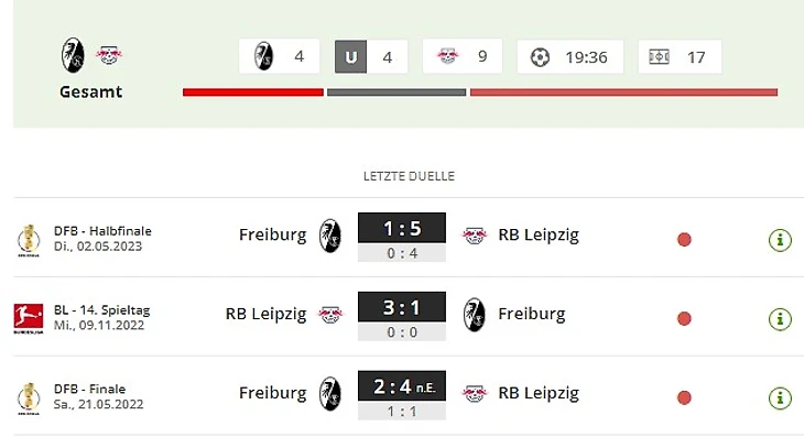 «Фрайбург» отпраздновал все свои три победы в Бундеслиге над «Лейпцигом» на глазах у собственных болельщиков (все на стадионе Драйзам). За всю историю выступлений в Бундеслиге «быки» потерпели больше выездных поражений только в Дортмунде и Мюнхене (по три), чем во Фрайбурге;