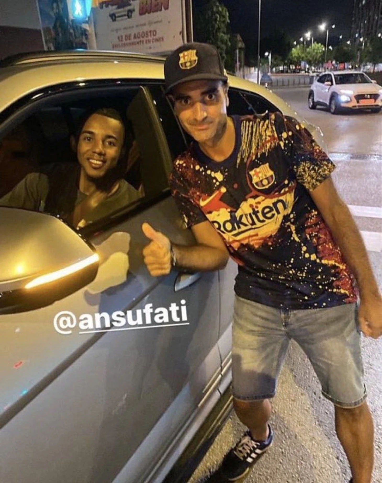 На фото крайне довольный собой и важностью момента болельщик «Барселоны» и игрок «Барселоны» за рулем автомобиля - фанат распознал в нем Ансу Фати.