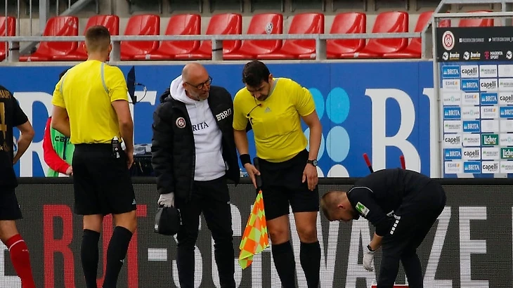 На 21-й минуте игры линейный арбитр Мариус Шлюве подвернул лодыжку, пытаясь уклониться от мяча. После оказания первой медицинской помощи судья покинул поле на носилках, а команды отправились в раздевалки. Регламент лиги не предусматривает наличие четвёртого рефери.