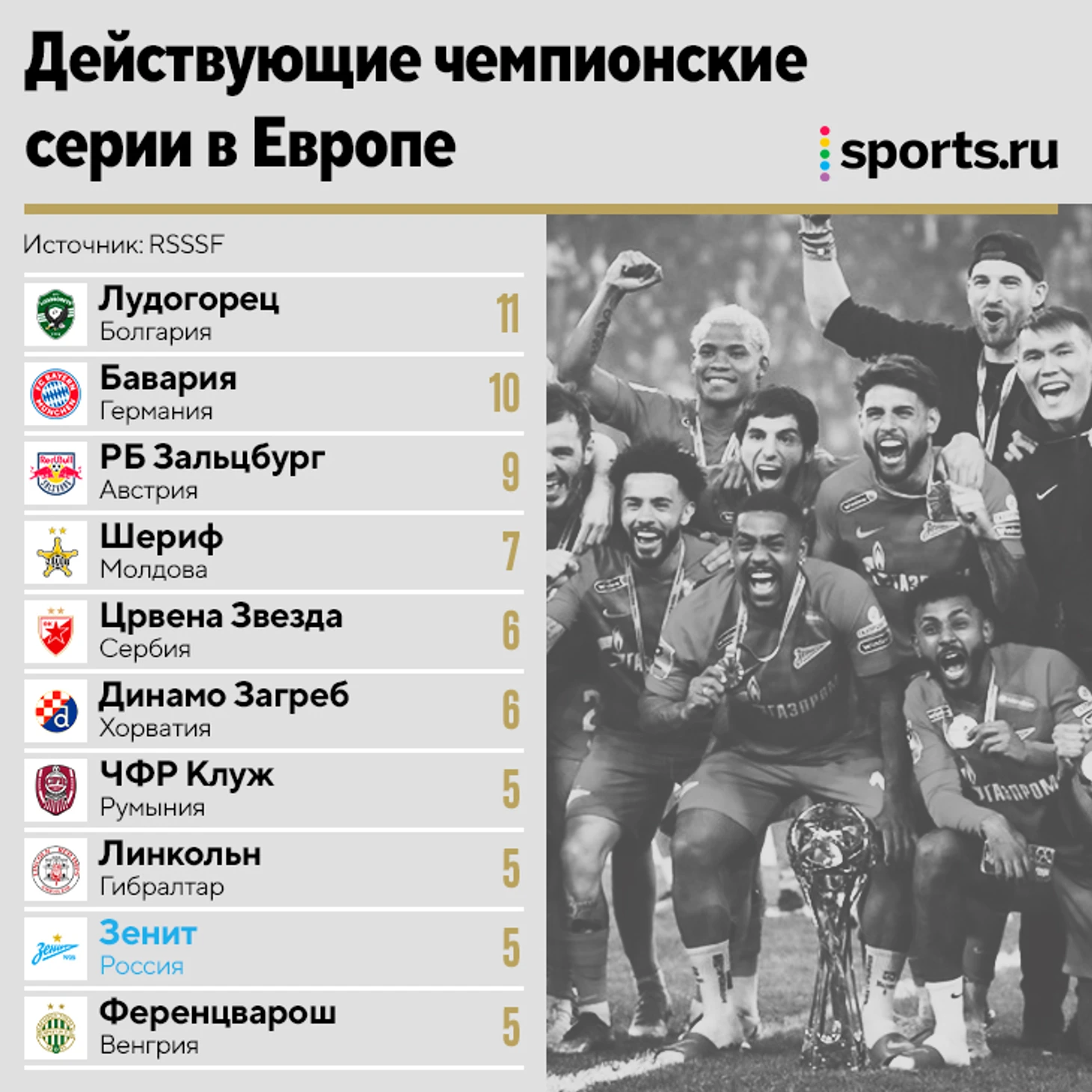 У «Зенита» подряд 5 чемпионств − а в Европе есть серии дольше?