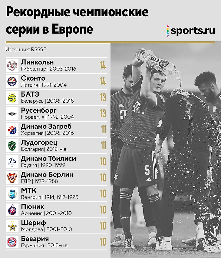 Это уже девятое чемпионство в России – и пятый титул подряд. В Европе сейчас есть сравнимые (или больше) по продолжительности серии?