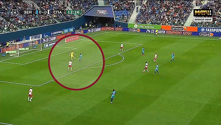 Матч «Зенит» – «Спартак» начинался вроде бы спокойно, пока простую ситуацию не подорвал спартаковский вратарь Александр Селихов.