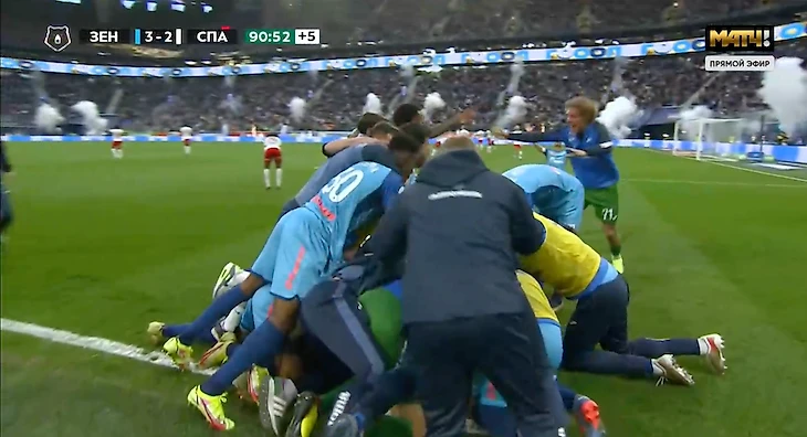 «Зенит» досрочно вырвал титул в драматичном матче со «Спартаком» (3:2). Большую часть игры команда Семака вела, за 15 минут до свистка получила еще и численное большинство (красная Дуарте), но «Спартак» не сдался.