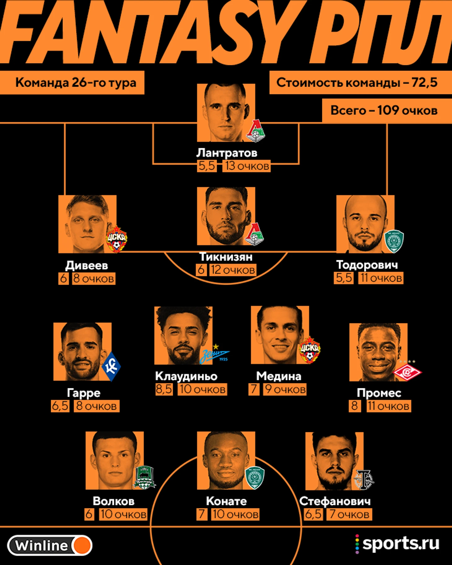 • состав – лучшее, что можно было получить в туре, если собирать команду по фэнтези-правилам (общая стоимость – 100, максимум двое из одного клуба, при равенстве очков проходит более дешевый).