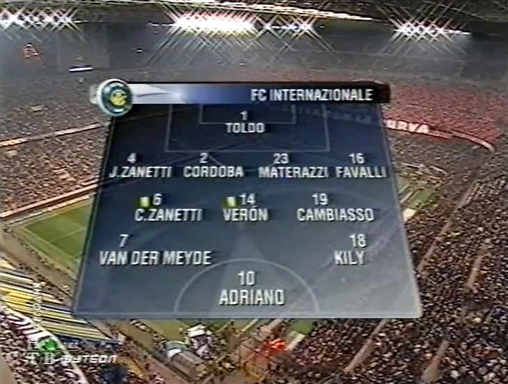 Заруба грандов вышла топовой в том числе благодаря легендам в составах. Лучший бомбардир «Интера» Адриано пропустил первый матч, но появился в ответном. К слову, вот расстановки команд на вторую игру.